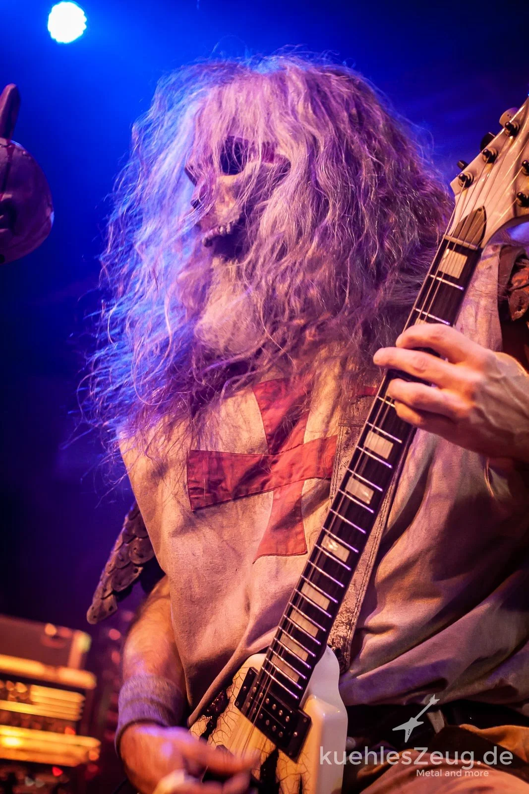 Punkt 8 geht die Sause dann los: die Warkings stürzen sich ins sprichwörtliche Getümmel. Die Konzept-Truppe – bestehend aus launigen Charakteren wie dem Crusader, dem Viking und dem Spartan – präsentiert schmackigen Power Metal, der bestens reinläuft und für einen standesgemäßen Auftakt sorgt. Oberschmied Hephaistos hämmert ordentlich drauflos, Zeremonienmeister Tribune besetzt das gute alte römische SPQR-Zeichen (für die alten Lateiner unter uns: „Senatus Populusque Romanus“, Senat und Volk von Rom – so, und das schreibst Du jetzt hundertmal) und prescht mit „The Last Battle“ und „Maximus“ ordentlich voran. Während wir uns noch frage, welche Nationalität sich denn hinter den diversen Masken verbirgt, springt der Metallarbeiter wieder hervor und haut zu seiner Hymne „Hephaistos“ wieder ordentlich zu. „Bavarrrrria!“, wendet sich der Volkstribun nun an uns – und fragt sich dann, ob denn allzu viele auf dem „Scheißhaus“ sind. Ok, so viel feine deutsche Sprachkunst kann nicht angelernt sein, deshalb lüften wir gerne mal den Schleier: niemand anderes als Serenity-Mastermind Georg Neuhauser steckt hinter dieser Truppe, die mit launigem Konzept und Sound irgendwo zwischen Sonata Arctica und Hammerfall hier genau ins Schwarze trifft. Zu „Hellfire“ und „Heart Of Rage“ gesellt sich dann noch eine dunkle Holde hinzu, die daherkommt wie die böse Königin aus Disneys „Snow White“, von Herrn Neuhauser allerdings als Morgana Le Fey vorgestellt wird. Die Damen-Rolle spielte bis vor kurzem noch Melissa Bonny, die als Queen of the Damned fungierte, aber auch Secil Sen macht als dunkle Fee einen schlanken Fuß, zumal die Grunz-Attacken astrein rüberkommen. Bei „Sparta“ gibt es dann noch einen fulminanten „Ahu!“-Schlachtruf-Anruf, bevor dann der „Gladiator“ den würdigen Schlusspunkt setzt. Der Schmied selbst baut mit ab, wir sind zufrieden und prüfen weiter die Lage.